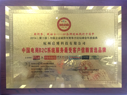 在2014年中国电商B2C软件评选中,启博软件脱颖而出,被评为受客户信赖的品牌。