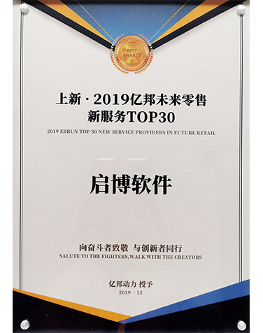 启博软件凭借其在社交分销领域的创新性、影响力以及杰出成绩斩获“亿邦未来零售新服务TOP30”奖项。