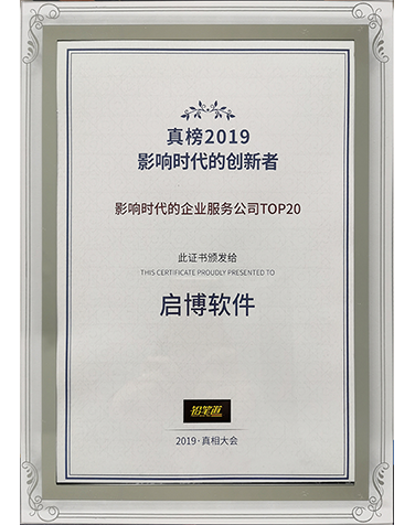 铅笔道·真相大会2019年度真榜颁奖典礼,启博软件在此次评选中喜获“影响时代的企业服务公司TOP20”