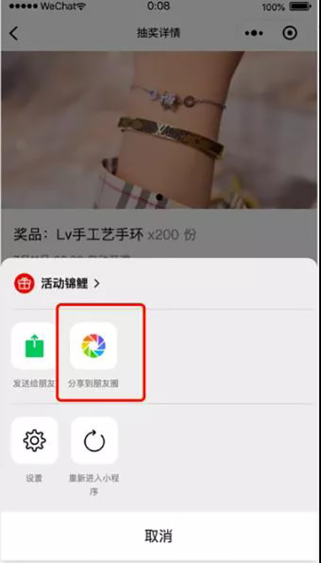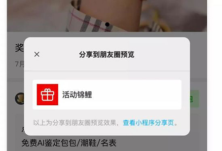 第二张图:点击分享到朋友圈按钮,弹出分享到朋友圈样式预览