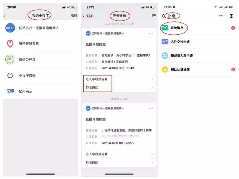 其实,推送消息功能上线前,小程序已有服务通知及小程序内通知功能,只是相对即将展示在微信消息列表中的消息推送,入口较深。
