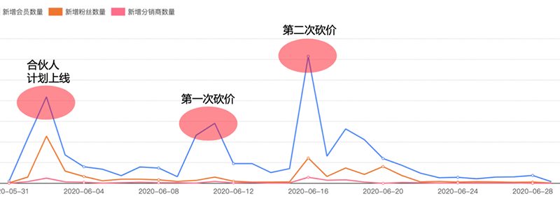 合伙人计划:带来一定的新增会员数,但效果并不明显,通过公众号头条新增数百人。