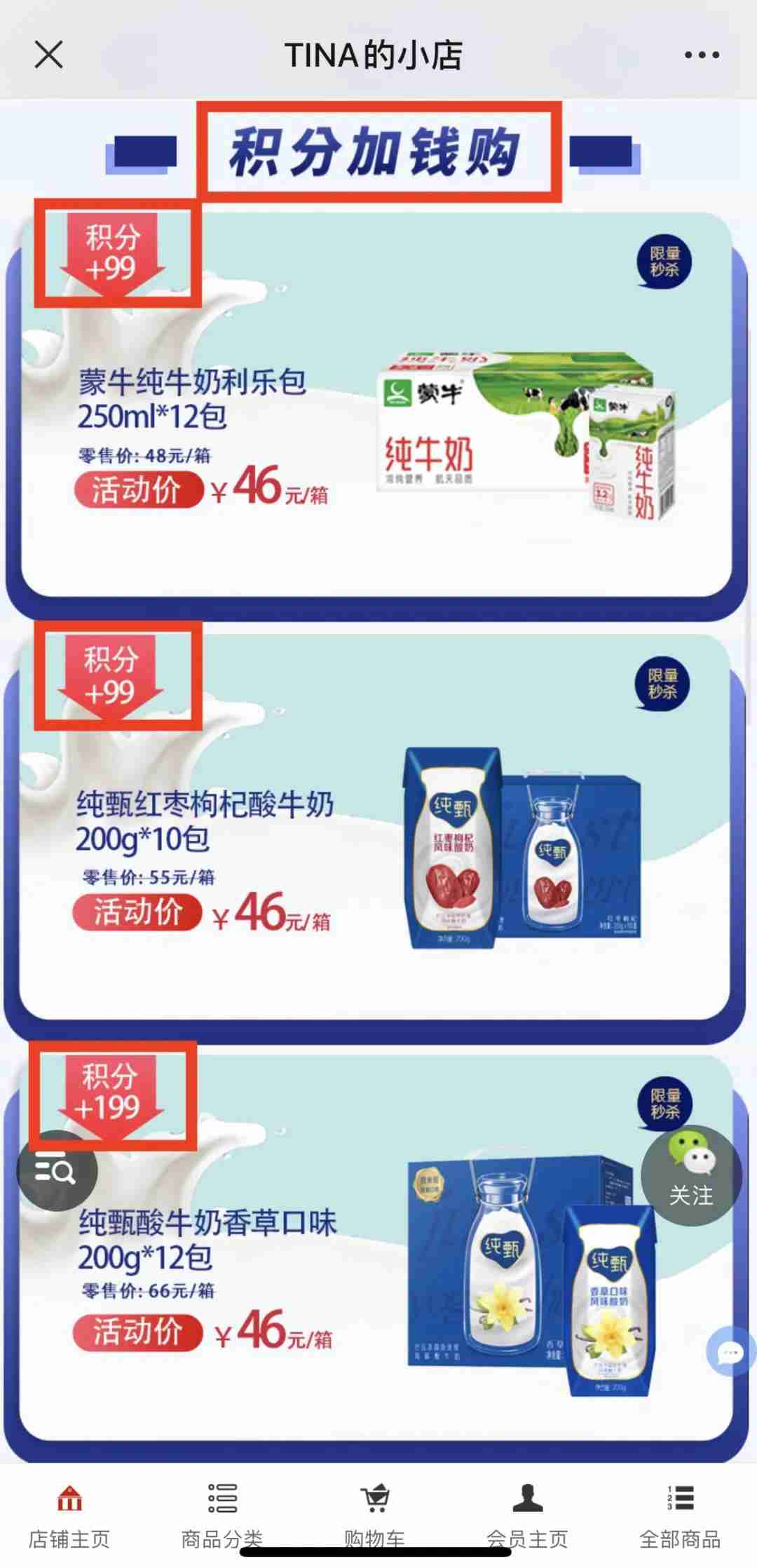蒙牛、一鸣真鲜奶吧等知名乳制品品牌的明智之处在于:及早发现了线下的短板,快速布局线上;利用限时积分福利、社群等为微商城赋能,挖掘出线下老客价值后,业绩暴涨。小程序商城。