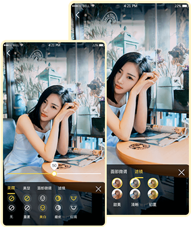 轻松提亮肤色、美白,瘦脸,上妆,还有海量滤镜效果,